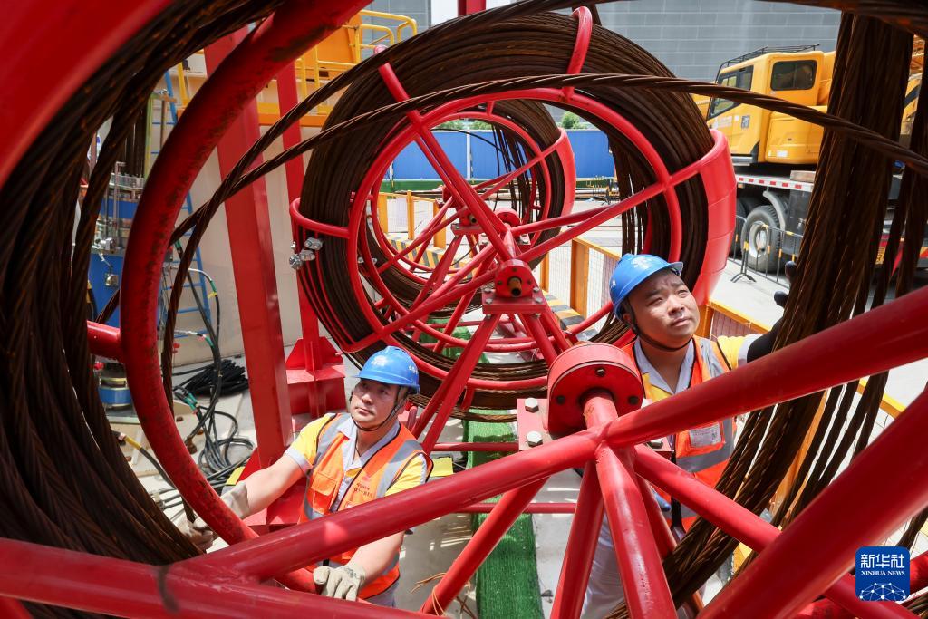 6月18日,作業(yè)人員在檢查豎井掘進(jìn)機(jī)吊裝系統(tǒng)。
