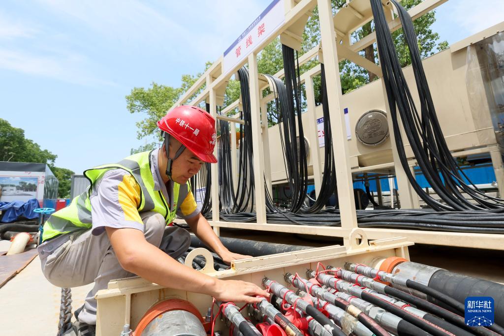 6月18日,作業(yè)人員在檢查豎井掘進(jìn)機(jī)液壓管路。