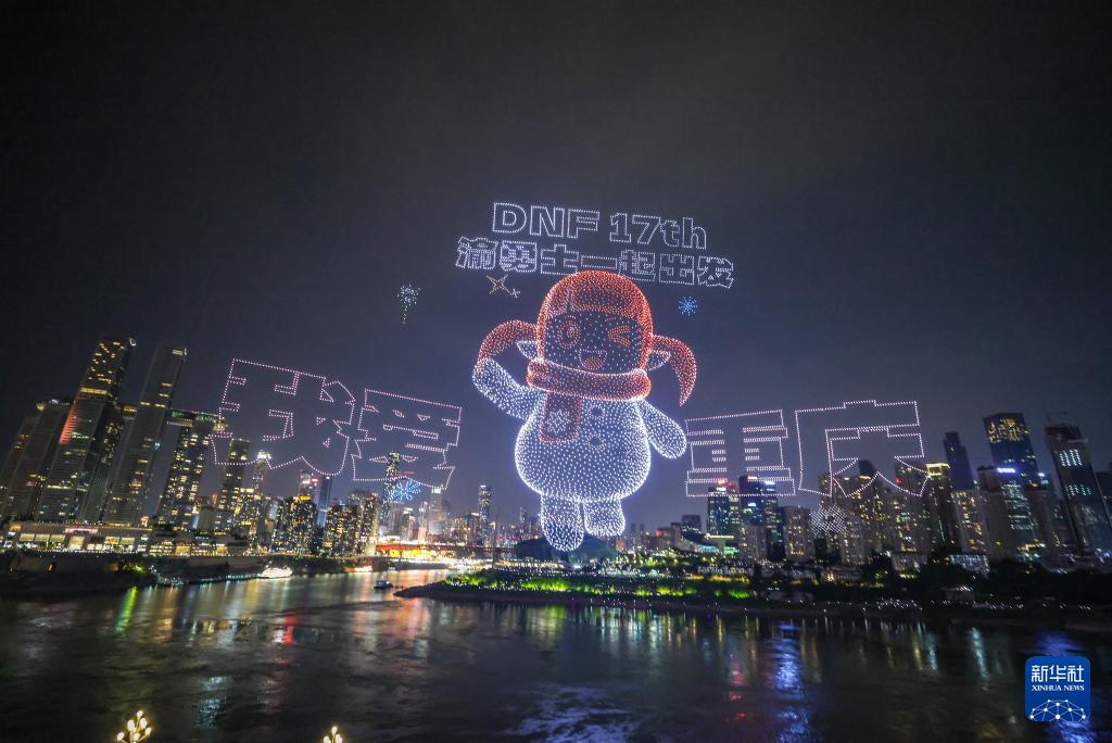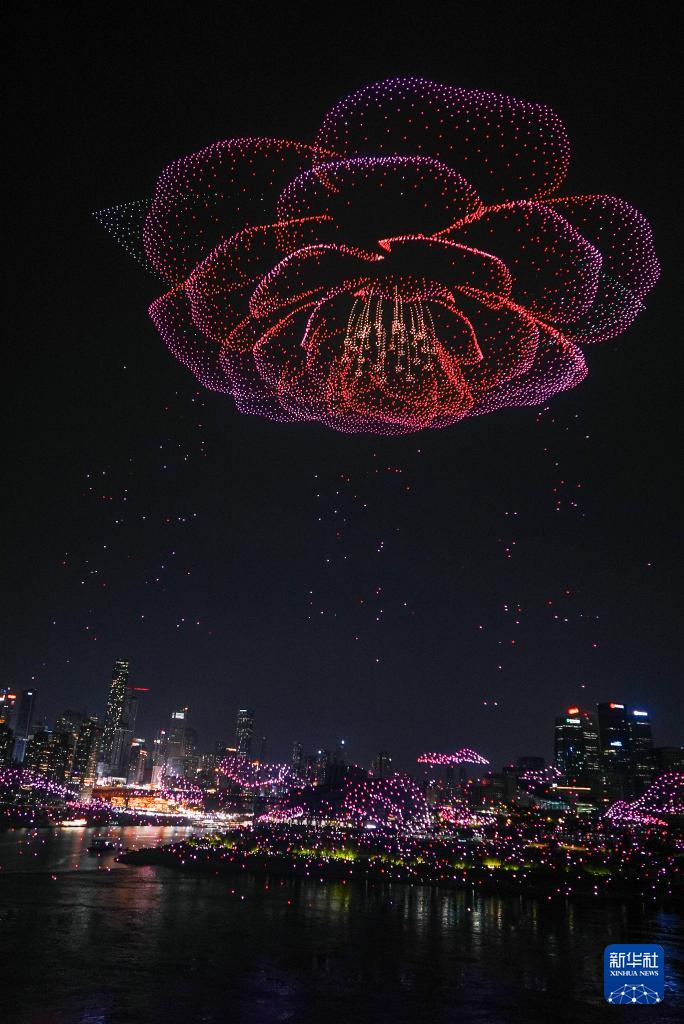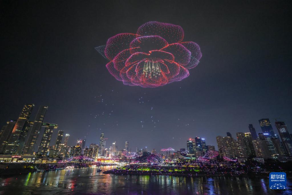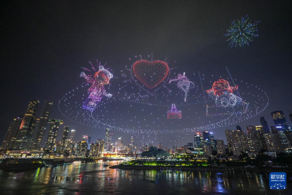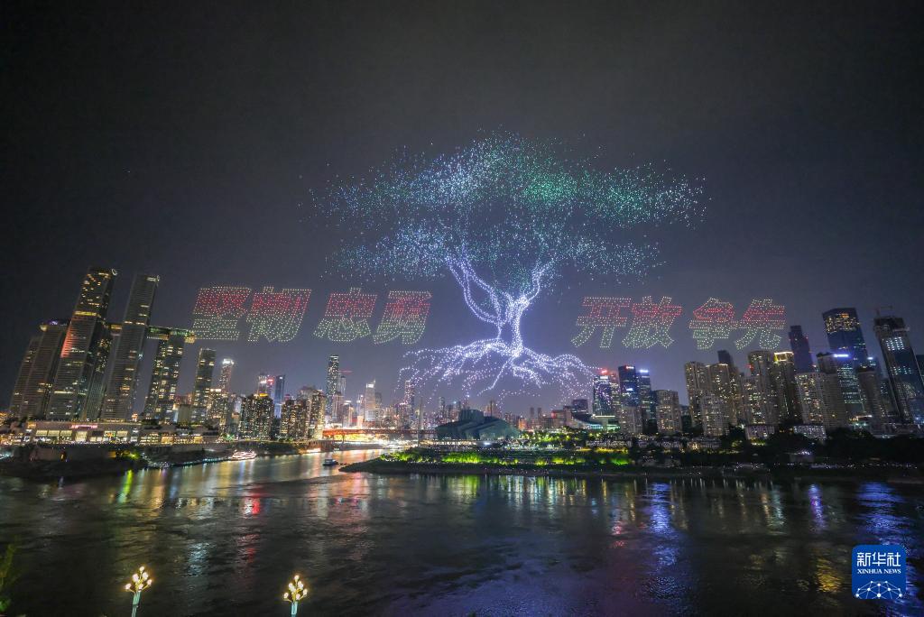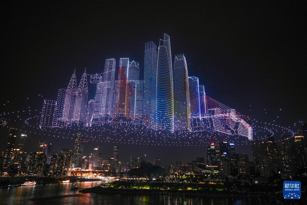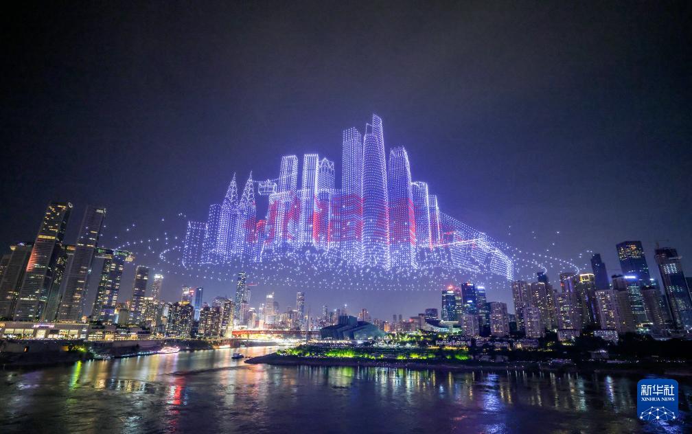 6月17日晚,重慶舉行超大規(guī)模無(wú)人機(jī)燈光秀表演,由11787架無(wú)人機(jī)組成的雙編隊(duì)飛行從重慶市南岸區(qū)彈子石廣場(chǎng)起飛,創(chuàng)造了“最多無(wú)人機(jī)組成的空中圖案”吉尼斯世界紀(jì)錄。