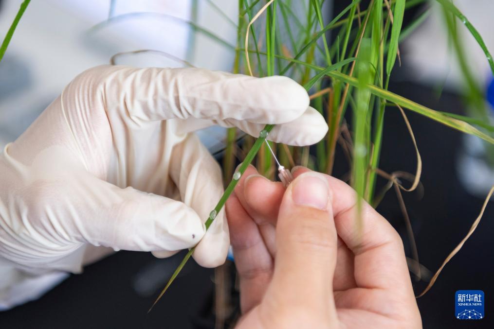 6月18日,在中國水稻研究所北方水稻研究中心,科研人員測試水稻對不同化合物的反應(yīng)。