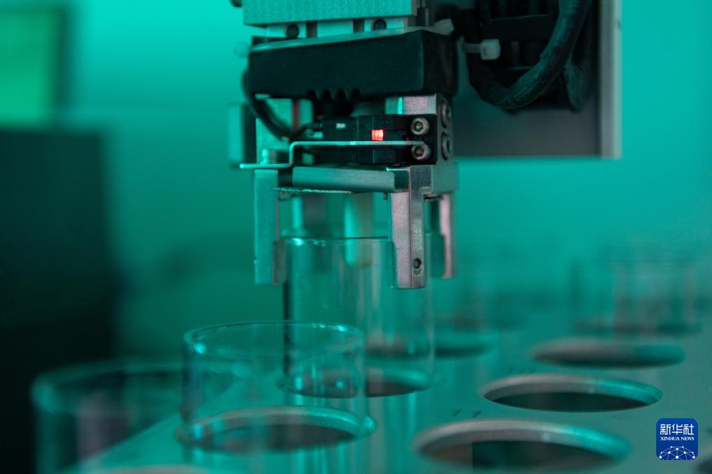 6月18日,在中國水稻研究所北方水稻研究中心,科研人員操控土壤有機質(zhì)分析機器人分析黑土中的有機質(zhì)含量。