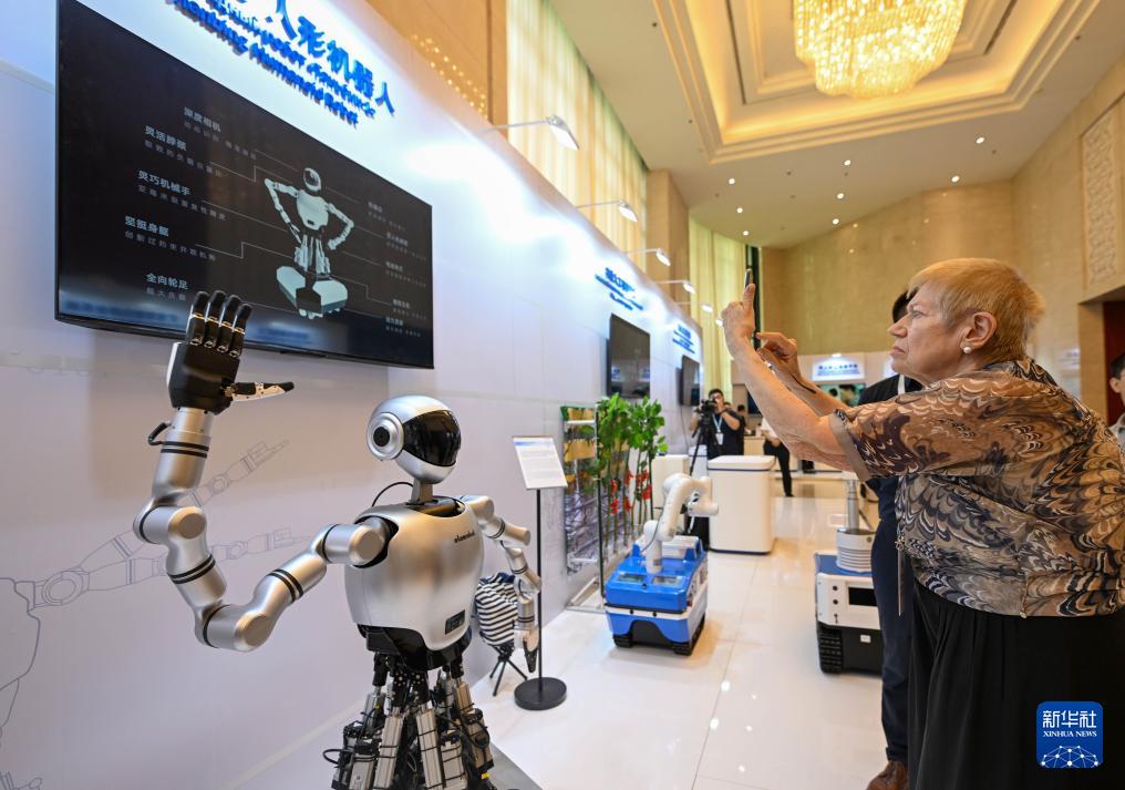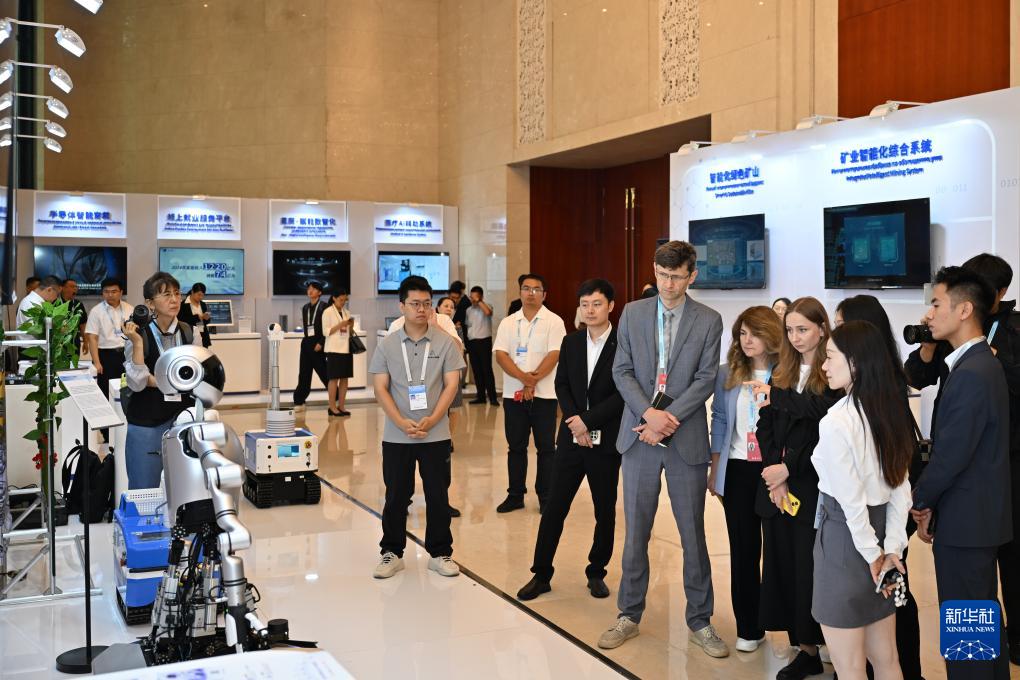 7月11日,參會(huì)嘉賓在2025上合組織數(shù)字經(jīng)濟(jì)論壇互動(dòng)體驗(yàn)區(qū)參觀。