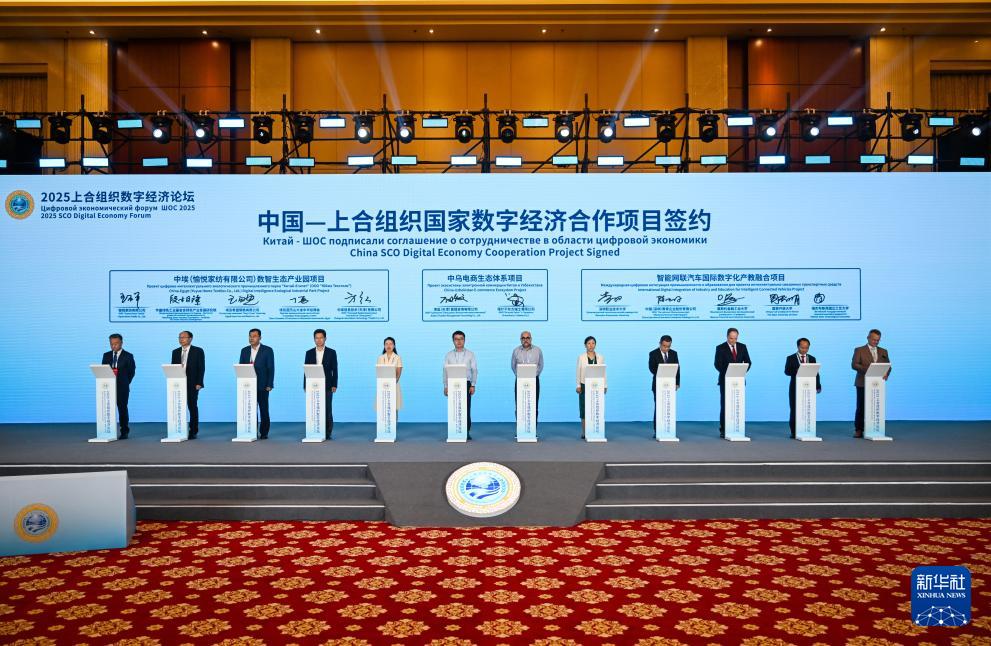 當(dāng)日,以“數(shù)字經(jīng)濟(jì)新紐帶 共拓合作新空間”為主題的2025上合組織數(shù)字經(jīng)濟(jì)論壇在天津舉行。