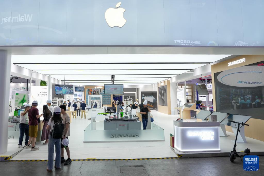 7月14日在第三屆中國國際供應(yīng)鏈促進(jìn)博覽會數(shù)字科技鏈展區(qū)拍攝的蘋果供應(yīng)鏈展位。