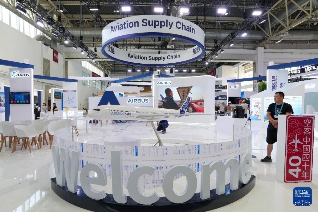 7月14日在第三屆中國國際供應(yīng)鏈促進(jìn)博覽會先進(jìn)制造鏈展區(qū)拍攝的航空產(chǎn)業(yè)鏈展位。