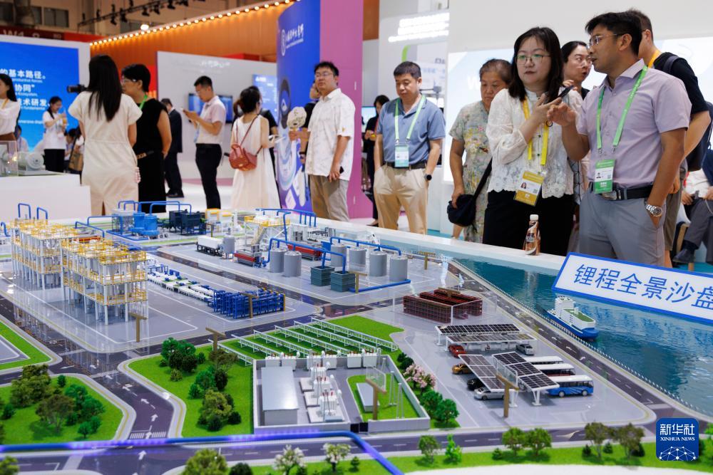 7月16日,在先進(jìn)制造鏈展區(qū)創(chuàng)新鏈專(zhuān)區(qū),觀眾參觀展示鋰電固體廢料高效低碳處理技術(shù)與應(yīng)用的全景沙盤(pán)。