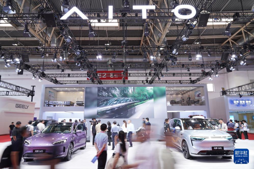 這是7月16日拍攝的問(wèn)界汽車(chē)展臺(tái)。