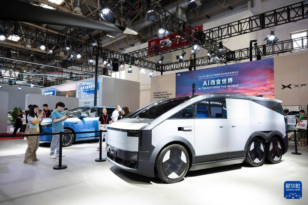 7月16日,參觀者在智能汽車(chē)鏈展區(qū)了解一款小鵬匯天展車(chē)。