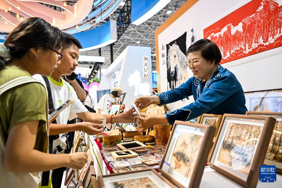 7月17日,觀眾在第九屆內(nèi)蒙古自治區(qū)文化產(chǎn)業(yè)博覽交易會(huì)現(xiàn)場(chǎng)參觀。