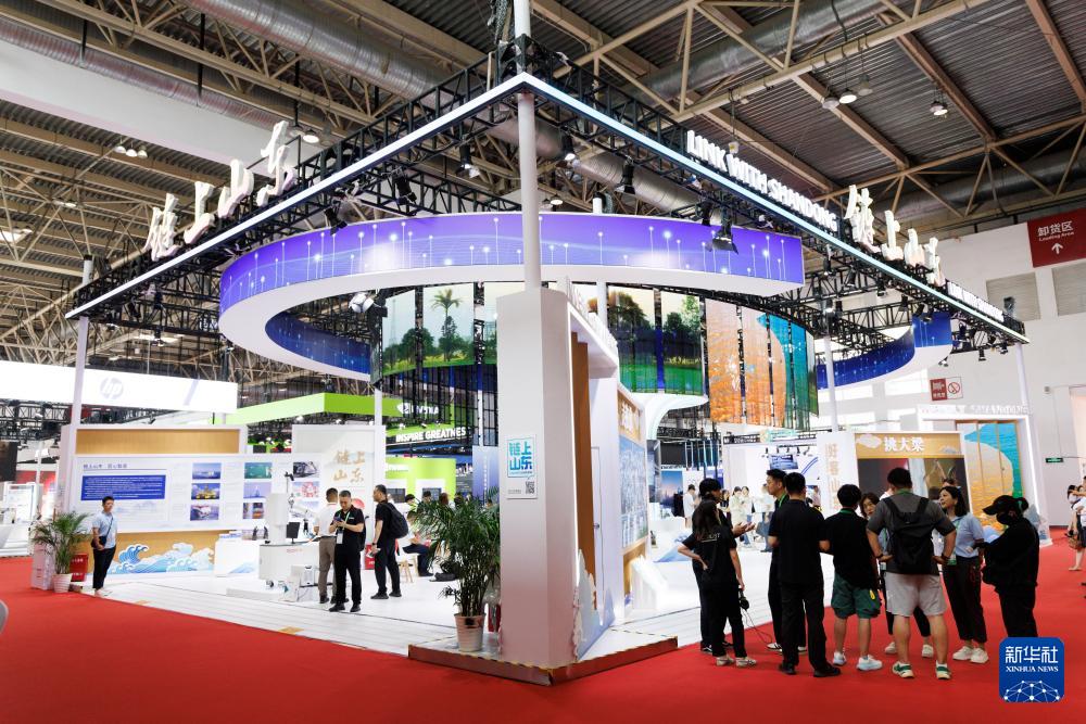 7月16日拍攝的第三屆中國(guó)國(guó)際供應(yīng)鏈促進(jìn)博覽會(huì)主賓省山東省展臺(tái)。