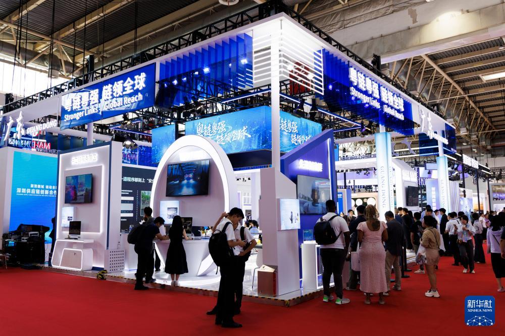 7月17日拍攝的第三屆中國(guó)國(guó)際供應(yīng)鏈促進(jìn)博覽會(huì)主賓省廣東省展臺(tái)。