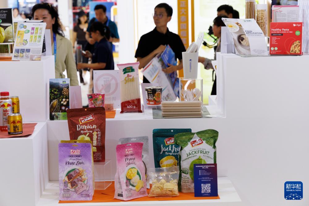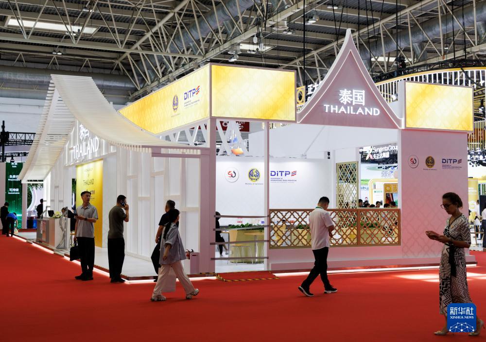7月17日拍攝的第三屆中國(guó)國(guó)際供應(yīng)鏈促進(jìn)博覽會(huì)主賓國(guó)泰國(guó)展臺(tái)。
