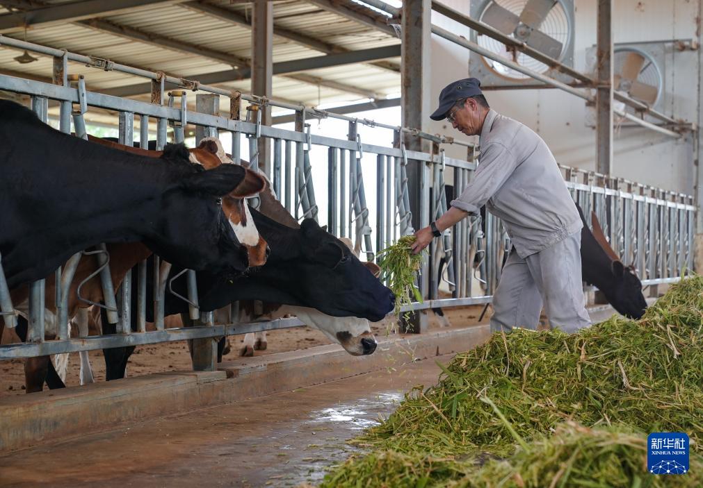 毛里塔尼亞80%以上的國土被沙漠覆蓋,炎熱干旱,土壤貧瘠,風(fēng)沙肆虐,植物不易生存。2017年,中國援毛里塔尼亞畜牧業(yè)技術(shù)示范中心技術(shù)合作項(xiàng)目在伊迪尼村正式啟動(dòng)。多年來,中國專家成功引種紫花苜蓿,實(shí)現(xiàn)規(guī)?;N植,解決了當(dāng)?shù)仫暡萘隙倘眴栴}。隨后,多個(gè)牧草品種陸續(xù)在撒哈拉沙漠推廣。在奶牛養(yǎng)殖與育種方面,示范中心與國內(nèi)牧業(yè)公司開展技術(shù)合作,選育適應(yīng)性強(qiáng)、耐粗飼的種牛,提高了牧區(qū)的養(yǎng)殖效益,為改善牧民生活、推動(dòng)當(dāng)?shù)匦竽翗I(yè)可持續(xù)發(fā)展做出積極貢獻(xiàn)。