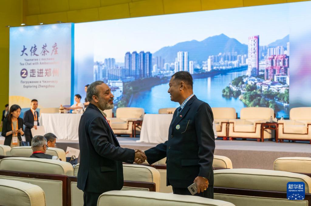 7月24日,在河南鄭州舉行的上海合作組織媒體智庫(kù)峰會(huì)會(huì)場(chǎng),與會(huì)代表握手寒暄。