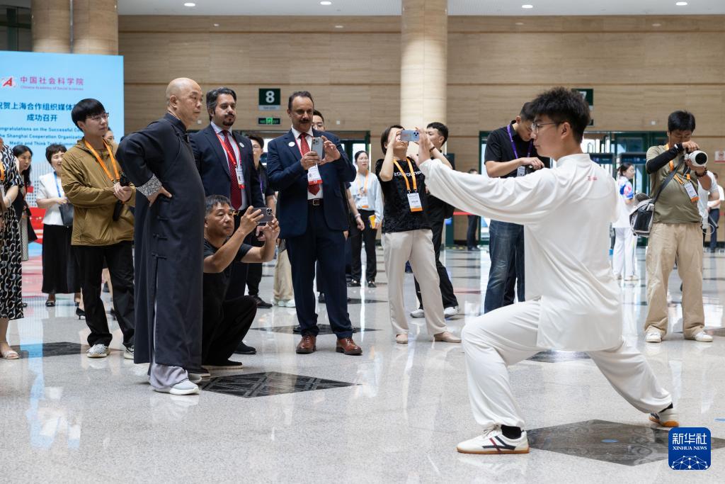 7月24日,在河南鄭州舉行的上海合作組織媒體智庫(kù)峰會(huì)會(huì)場(chǎng),與會(huì)代表觀看太極拳表演。