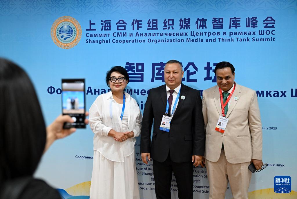 7月24日,在河南鄭州舉行的上海合作組織媒體智庫(kù)峰會(huì)會(huì)場(chǎng),與會(huì)代表合影留念。