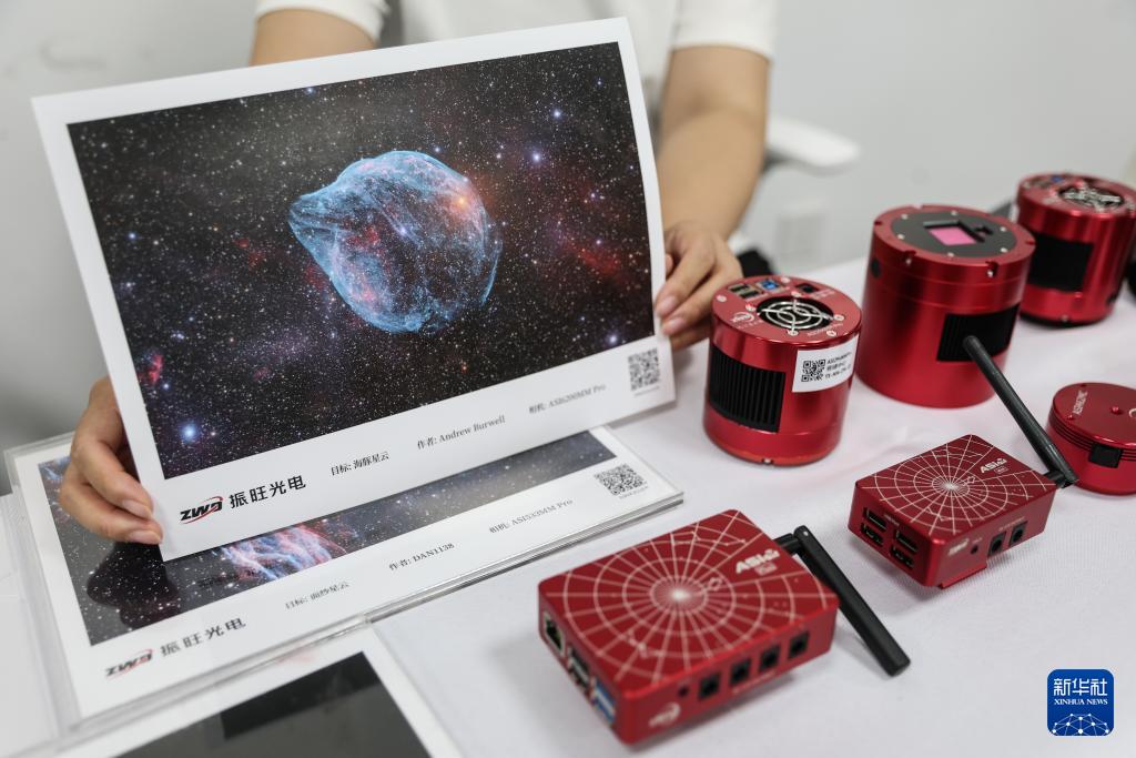 7月31日,工作人員在首屆全國天文公眾科學大會活動現(xiàn)場展示使用天文攝影機拍攝的照片。