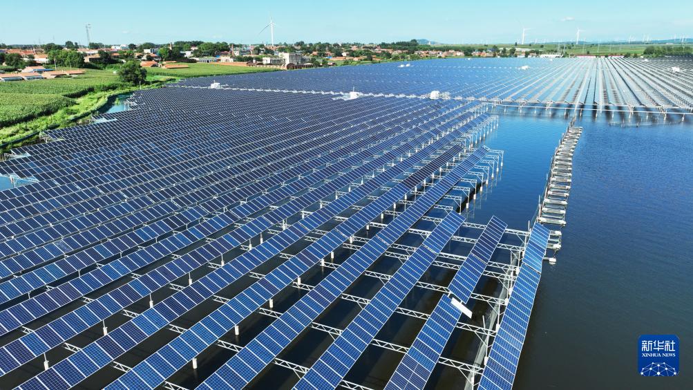 7月30日在鐵嶺縣大青水庫拍攝的光伏發(fā)電板(無人機(jī)照片)。