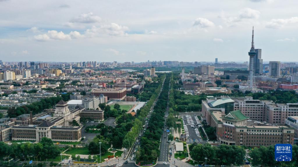 7月28日拍攝的長春新民大街(無人機全景拼接照片)。