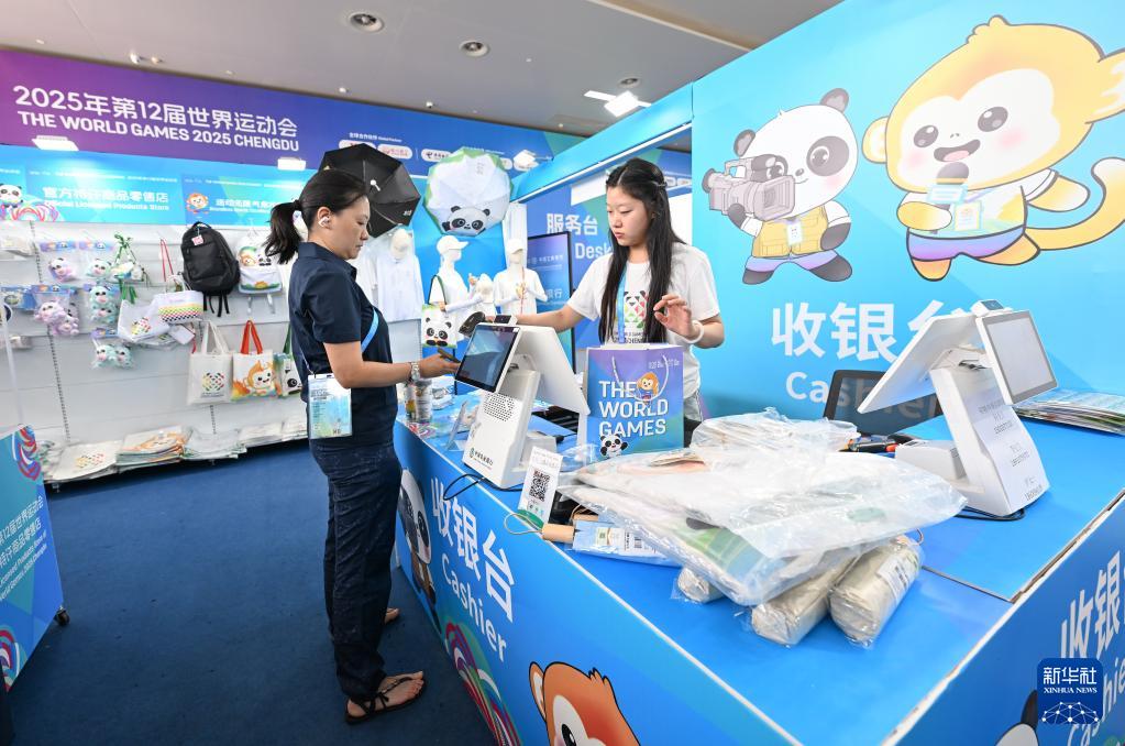 這是成都世運(yùn)會主媒體中心官方特許商品零售店(8月4日攝)。