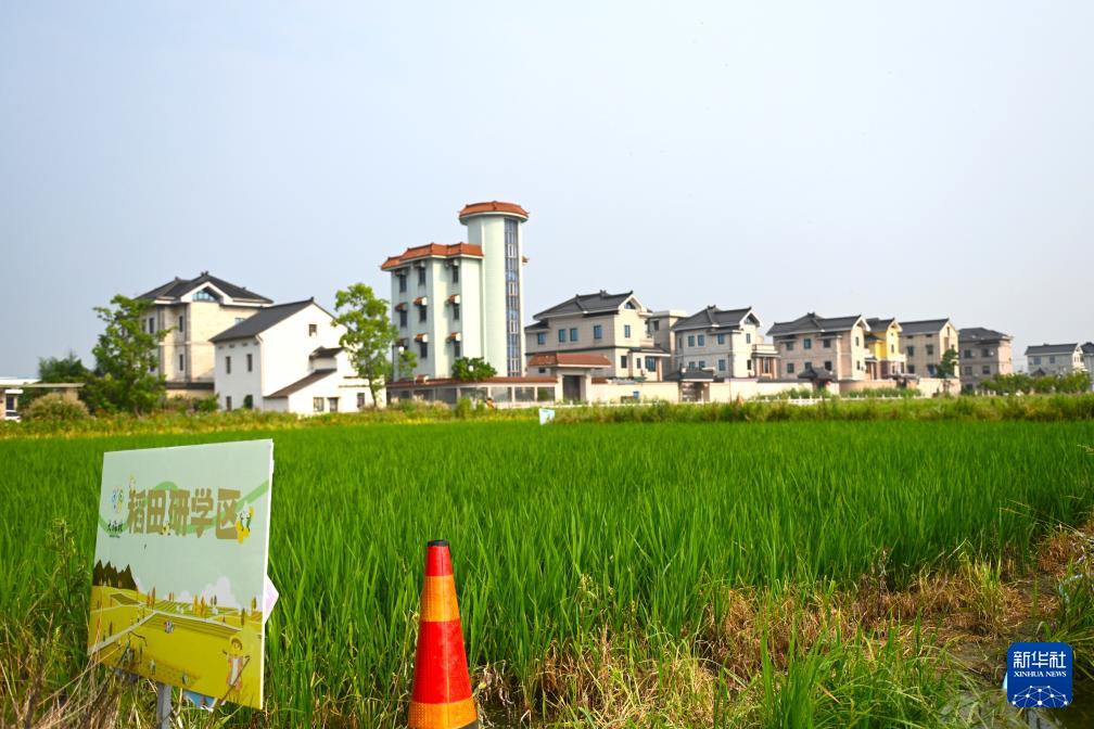 這是8月4日在浙江省杭州市蕭山區(qū)梅林村拍攝的稻田研學(xué)區(qū)。