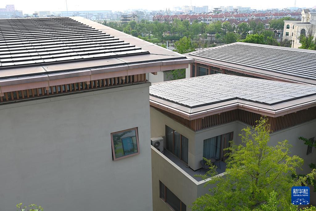 這是8月4日在浙江省杭州市蕭山區(qū)梅林村拍攝的民居屋頂光伏板。