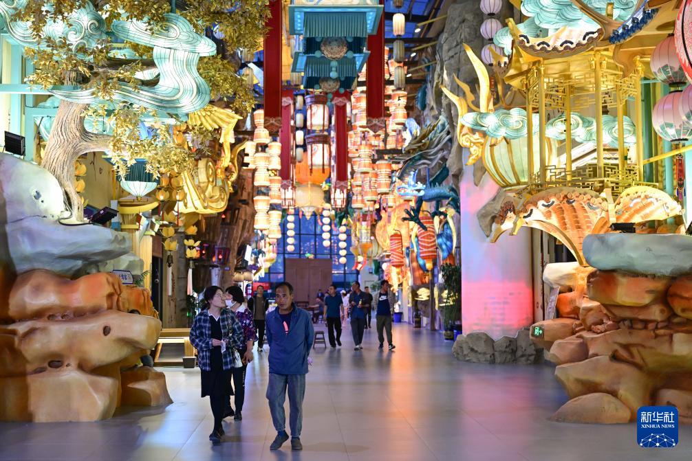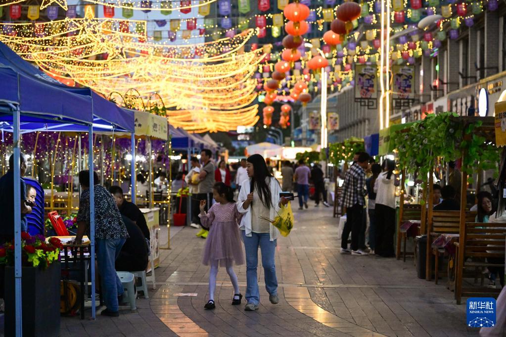7月2日,市民在青海格爾木的“旱碼頭”夜市逛街。
