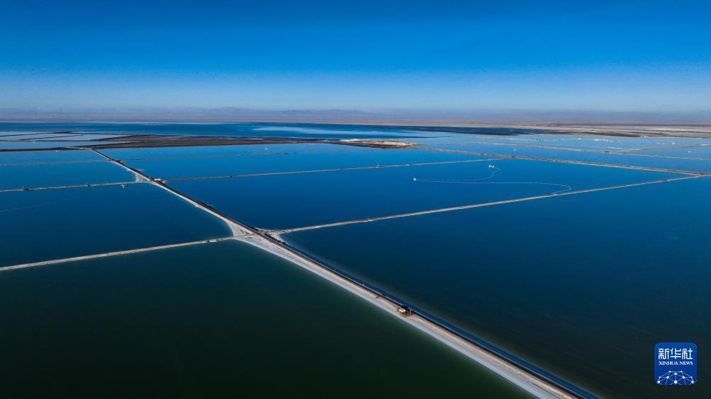 這是2024年11月29日拍攝的青海格爾木察爾汗鹽湖一角(無人機照片)。