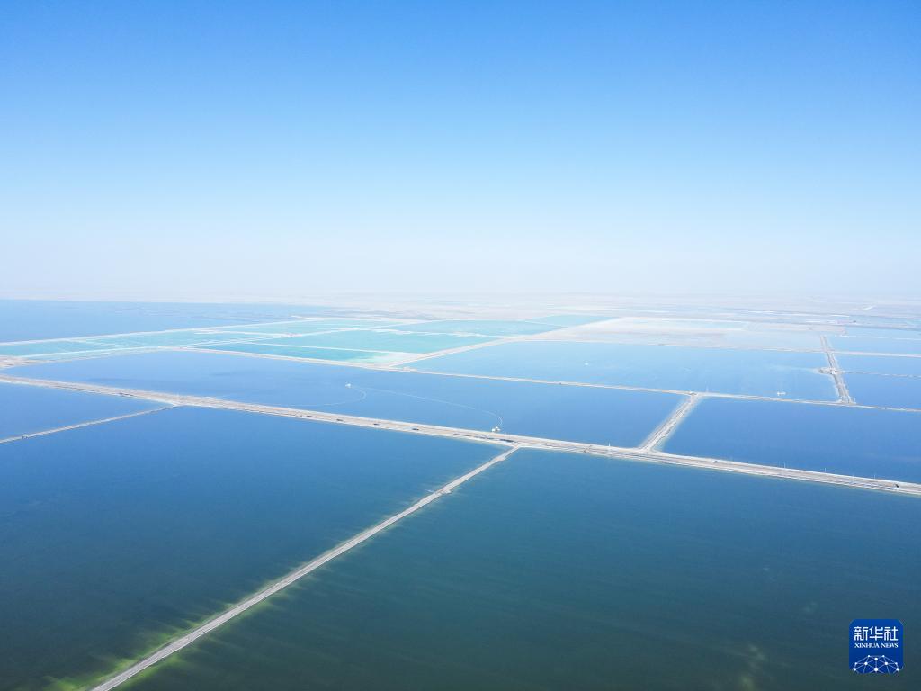這是3月19日拍攝的青海格爾木察爾汗鹽湖一角(無人機照片)。
