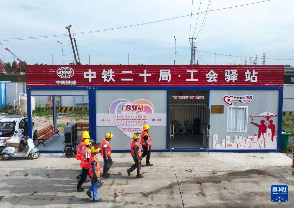 8月6日,中鐵建城通公司工人準(zhǔn)備進(jìn)入“工會驛站”休息。