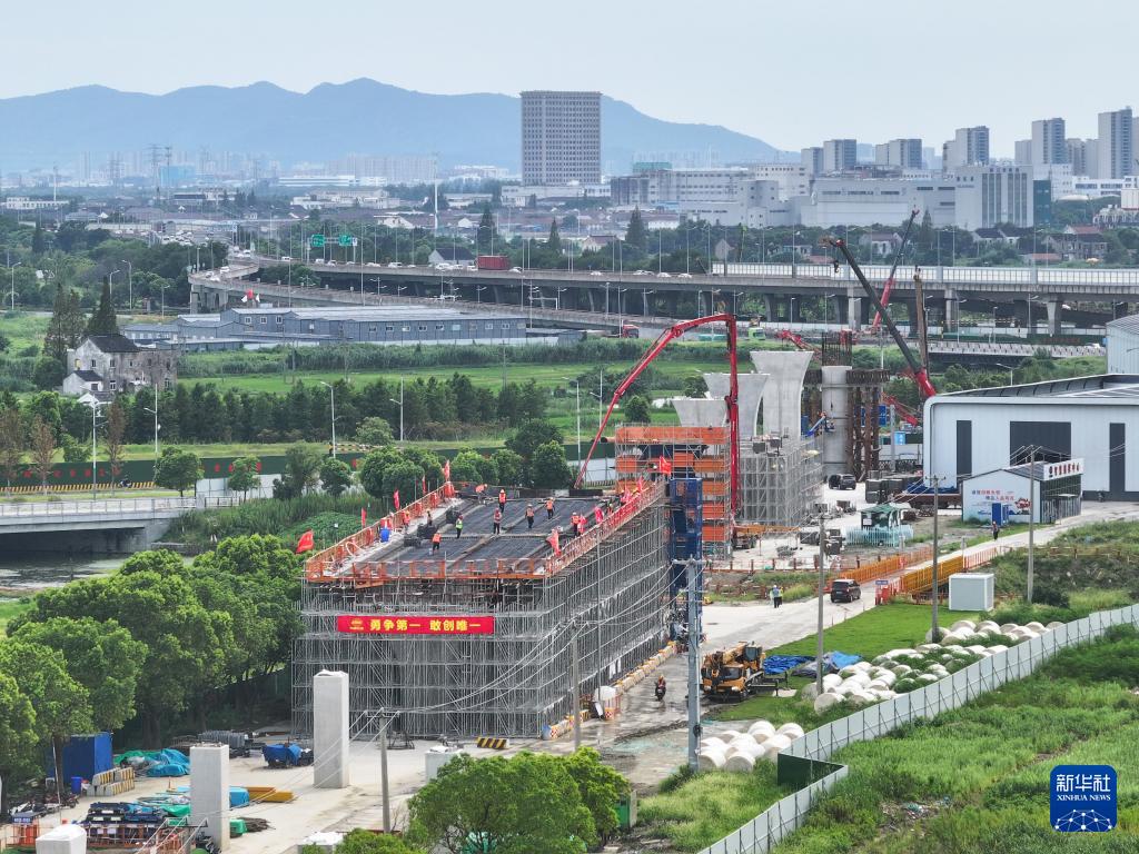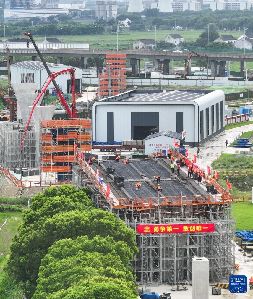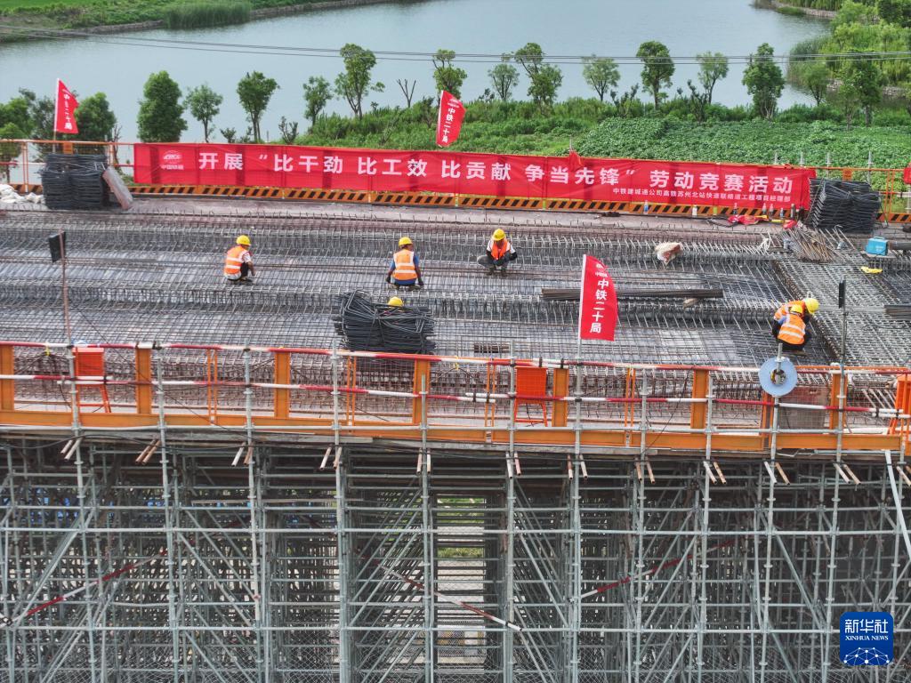 8月6日拍攝的中鐵建城通公司高鐵蘇州北站快速聯(lián)絡(luò)道1標(biāo)段項(xiàng)目施工現(xiàn)場(無人機(jī)照片)。