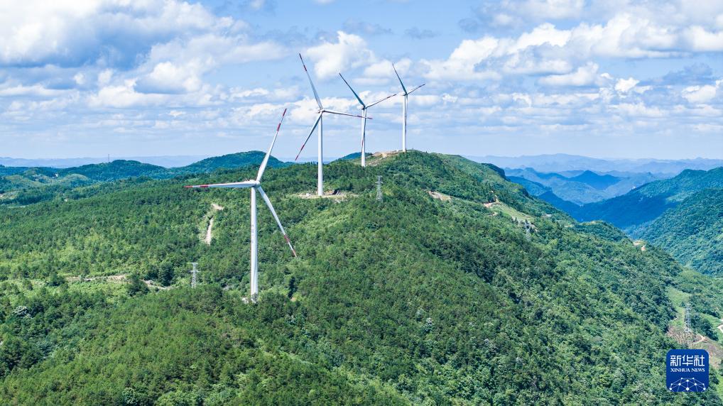 位于龍里縣的風(fēng)力發(fā)電設(shè)施(7月4日攝,無(wú)人機(jī)照片)。