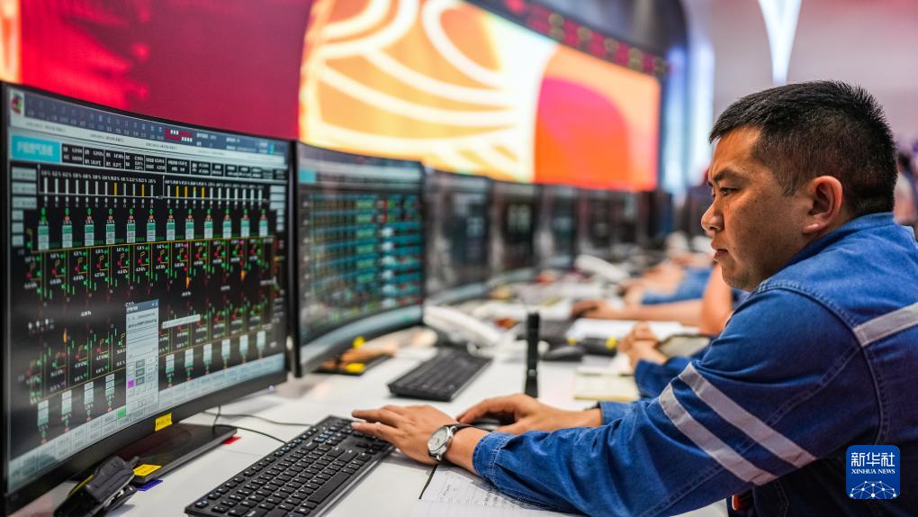 工作人員在國(guó)家電投貴州金元平遠(yuǎn)電廠查看發(fā)電設(shè)施運(yùn)轉(zhuǎn)情況(8月5日攝)。