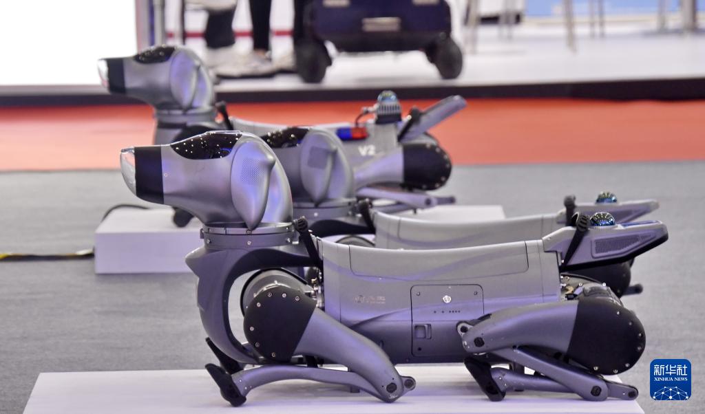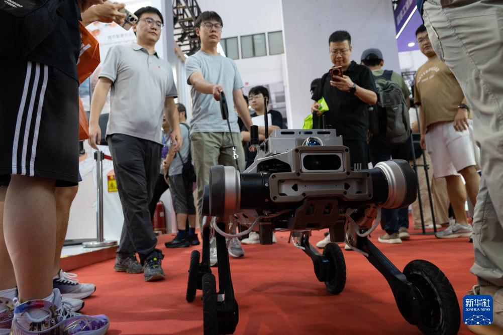 這是8月8日拍攝的2025世界機器人大會上展出的智能機器狗。