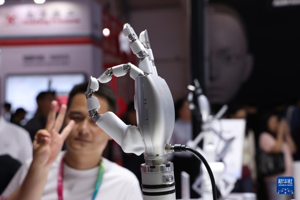 8月8日,觀眾在2025世界機器人大會上觀看展示的一款靈巧手。