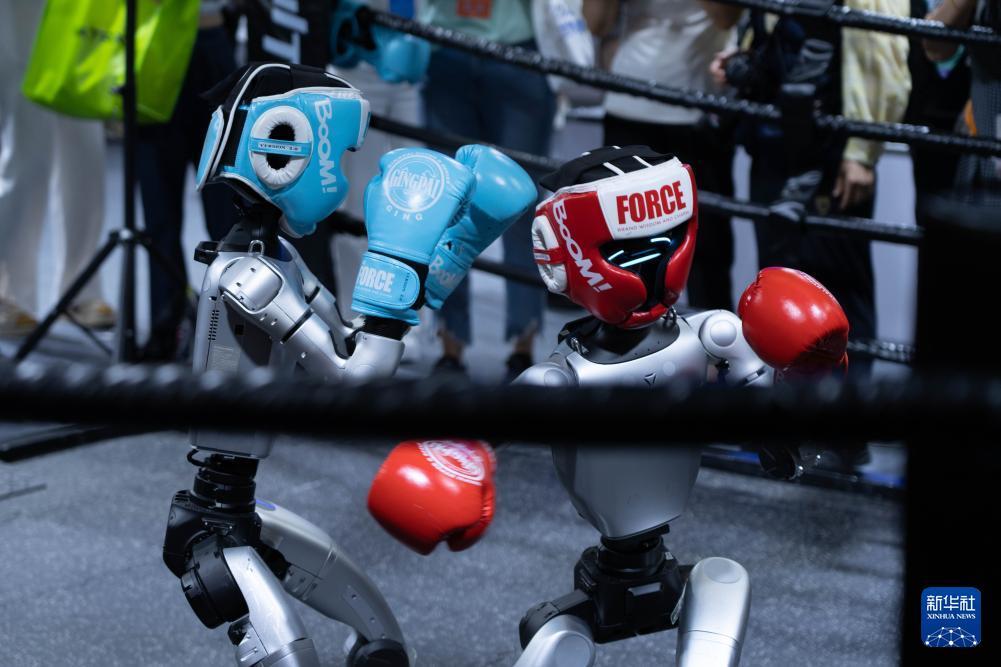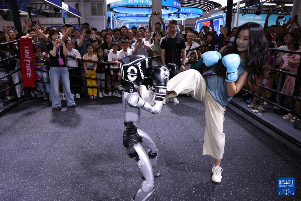 這是2025世界機器人大會上展示的一款拳擊機器人(8月8日攝)。