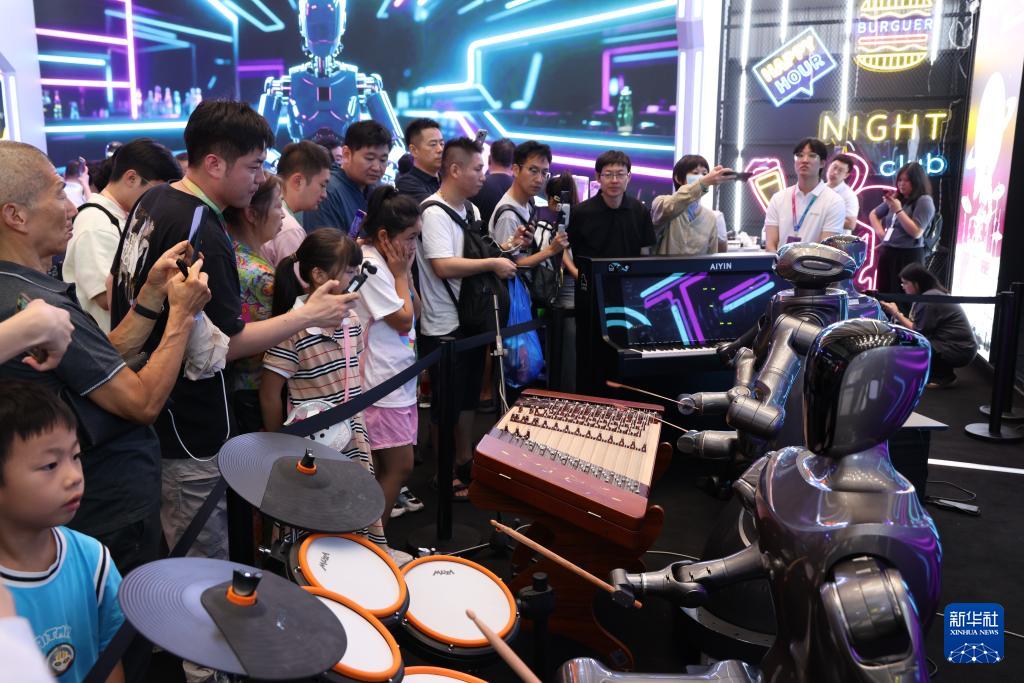 8月8日,觀眾在2025世界機器人大會上觀看機器人樂隊演奏。