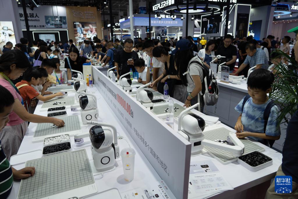 8月8日,觀眾在2025世界機器人大會上與機器人對弈。