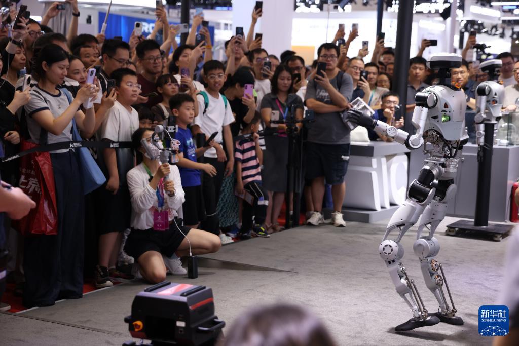 8月8日,觀眾在2025世界機器人大會上觀看一款跳舞機器人。