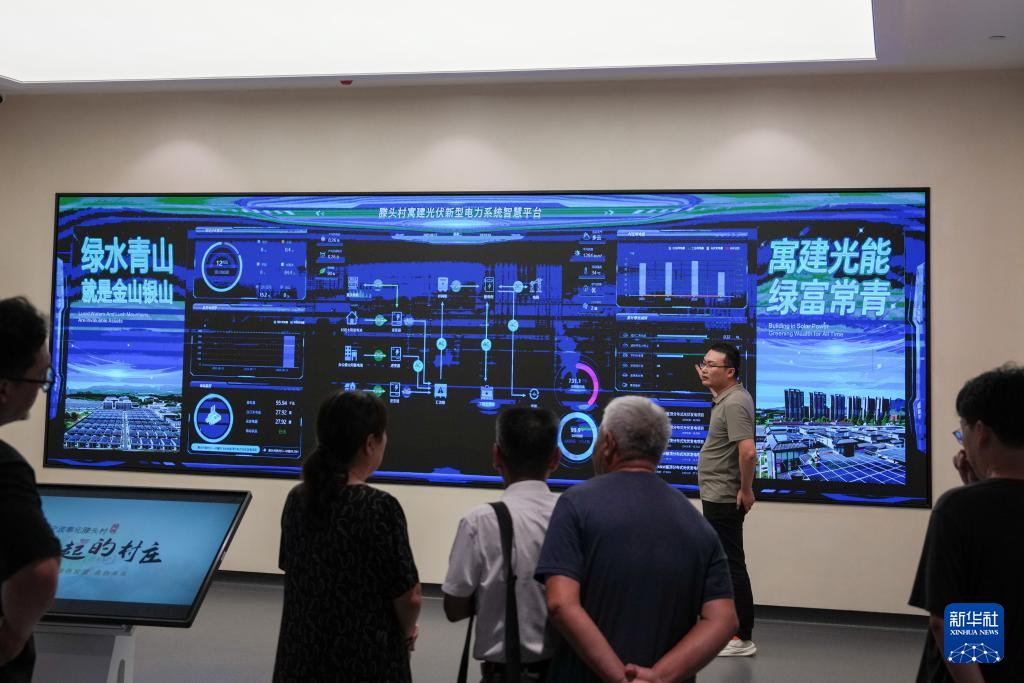 8月12日,寧波奉化蕭王廟街道滕頭村村民代表在了解光伏發(fā)電項(xiàng)目的智慧平臺(tái)。