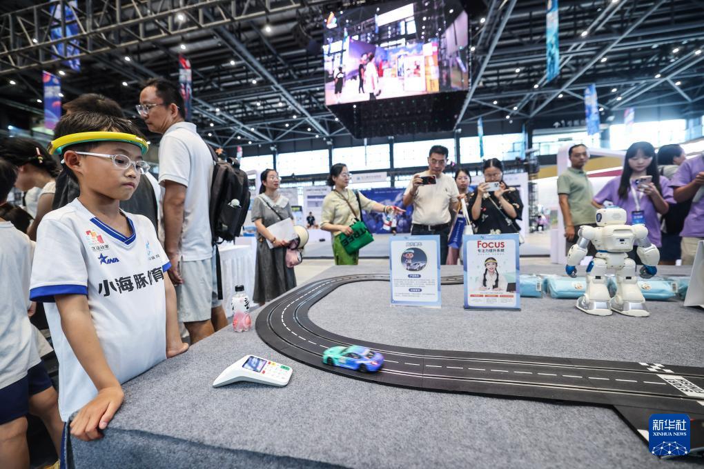 8月17日,小朋友在青少年科技嘉年華上進行“腦控萬物”技術(shù)體驗。