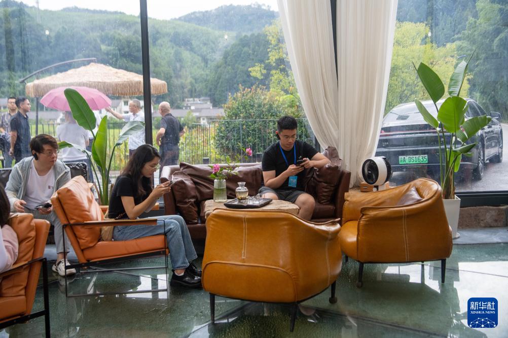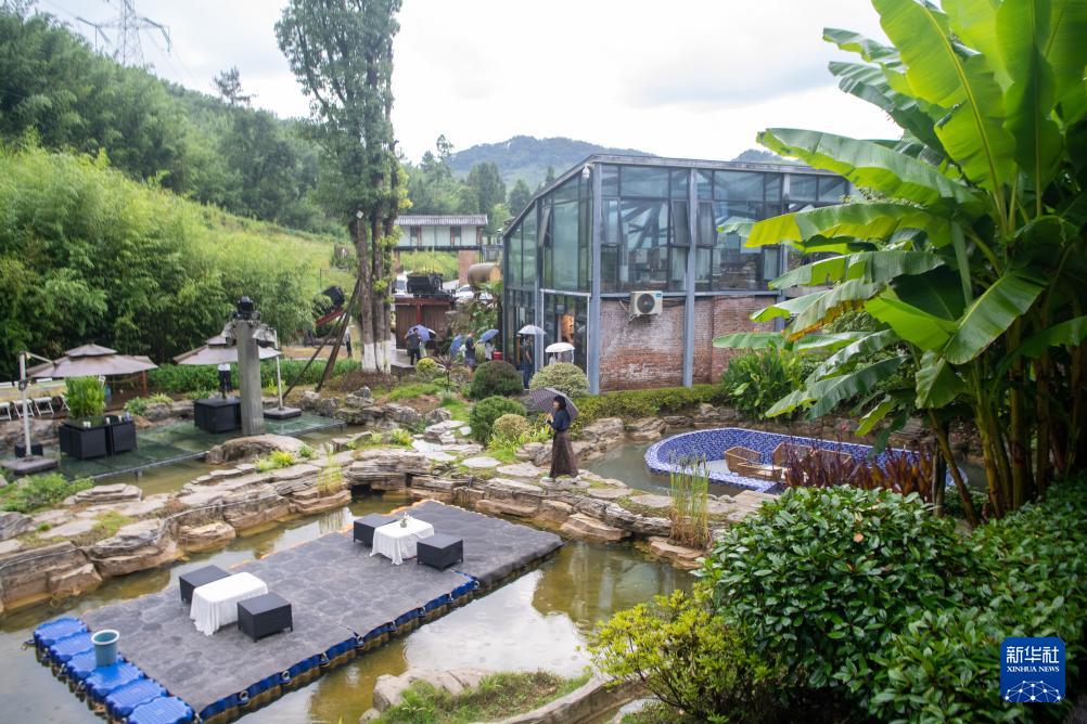 8月15日,人們在竹山鎮(zhèn)獵神村一處用礦山用房改造的咖啡館內(nèi)休息。