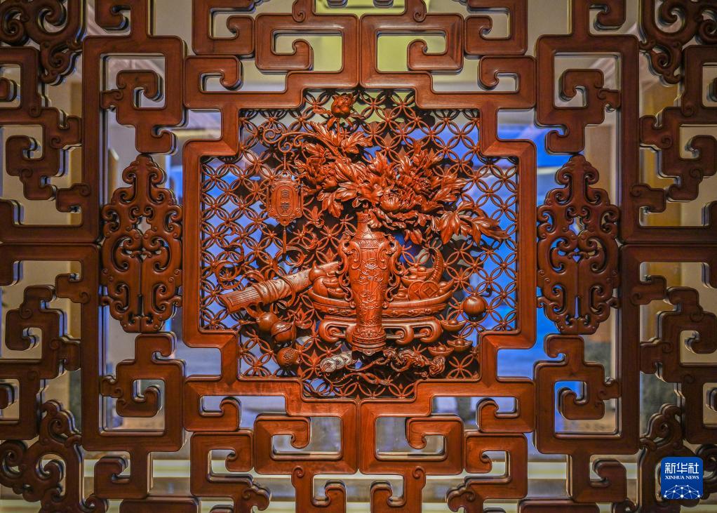 這是8月18日在莆田仙游三福古典家具有限公司拍攝的工藝美術(shù)品。