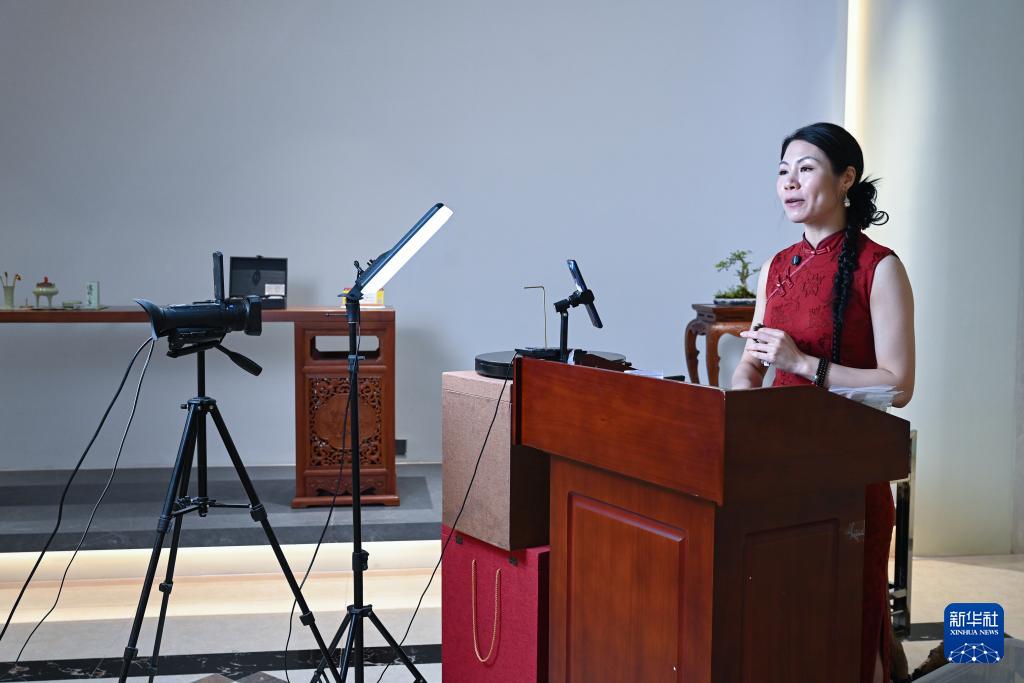 8月18日,主播在莆田仙游三福藝術(shù)館進行網(wǎng)絡(luò)直播帶貨。