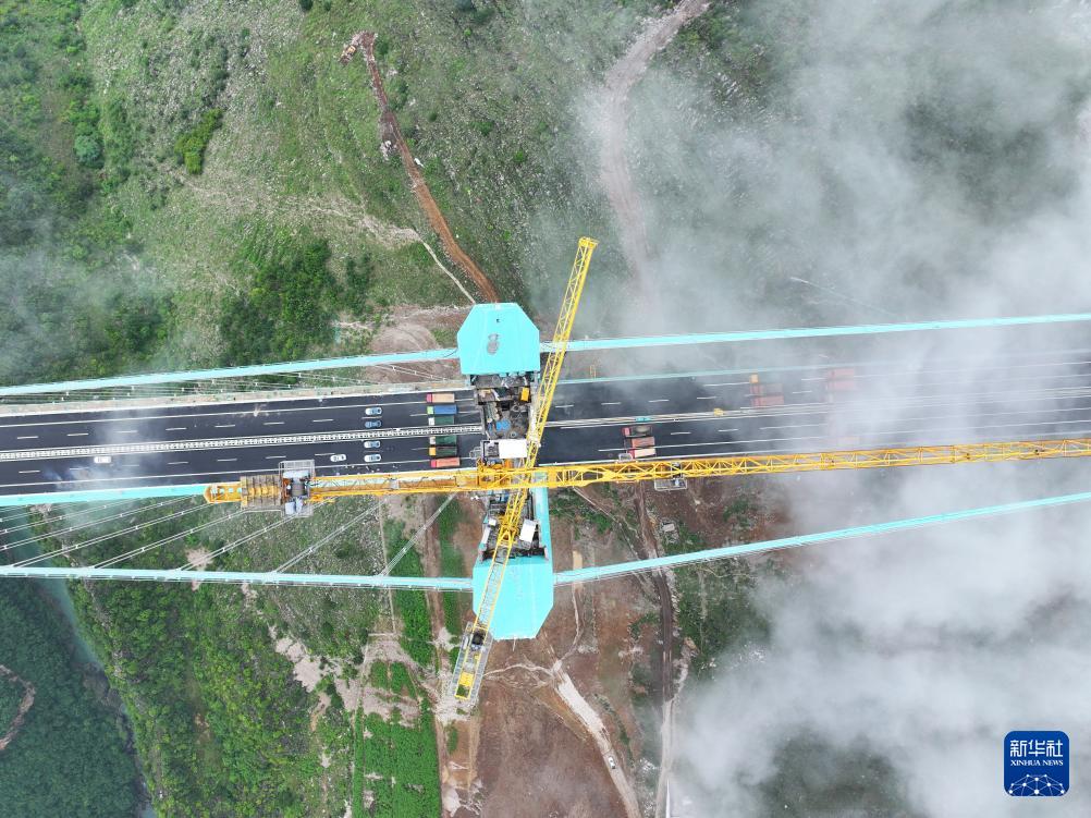 8月21日拍攝的貴州花江峽谷大橋荷載試驗現(xiàn)場(無人機照片)。