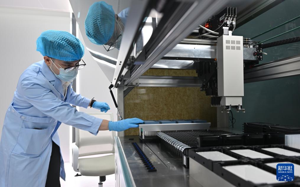 8月27日,三亞崖州灣科技城月亮島綜合實(shí)驗(yàn)室的工作人員在檢查全自動(dòng)酶免工作站。??诤jP(guān)實(shí)驗(yàn)室總面積5.6萬(wàn)平方米,主要分布在??凇⑷齺?,共有8棟實(shí)驗(yàn)室大樓。三亞崖州灣科技城月亮島綜合實(shí)驗(yàn)室是其中之一。