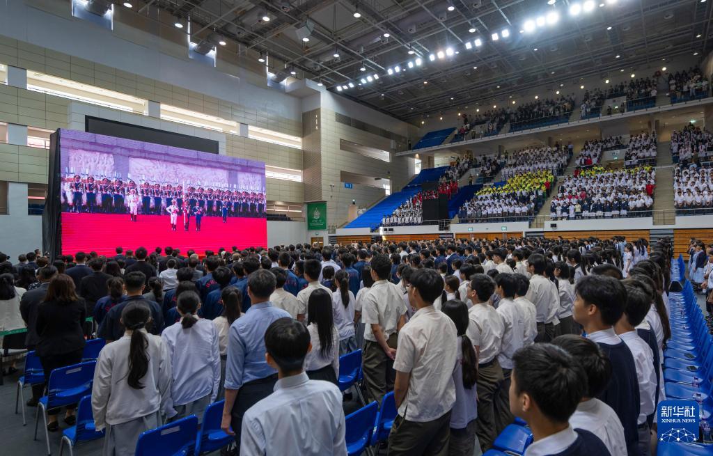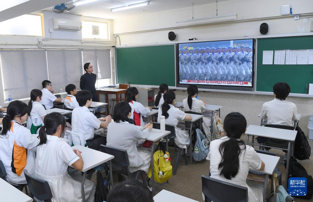 9月3日,香港培僑中學(xué)師生觀看紀(jì)念中國人民抗日戰(zhàn)爭暨世界反法西斯戰(zhàn)爭勝利80周年大會直播。