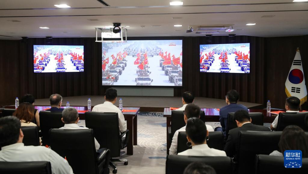 9月3日,在韓國首爾,華僑華人等觀看紀念中國人民抗日戰(zhàn)爭暨世界反法西斯戰(zhàn)爭勝利80周年大會直播。