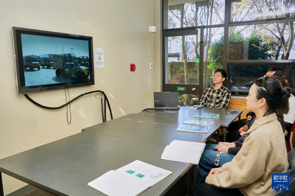 9月3日,在新西蘭克賴斯特徹奇,坎特伯雷大學的中國留學生觀看紀念中國人民抗日戰(zhàn)爭暨世界反法西斯戰(zhàn)爭勝利80周年大會直播。