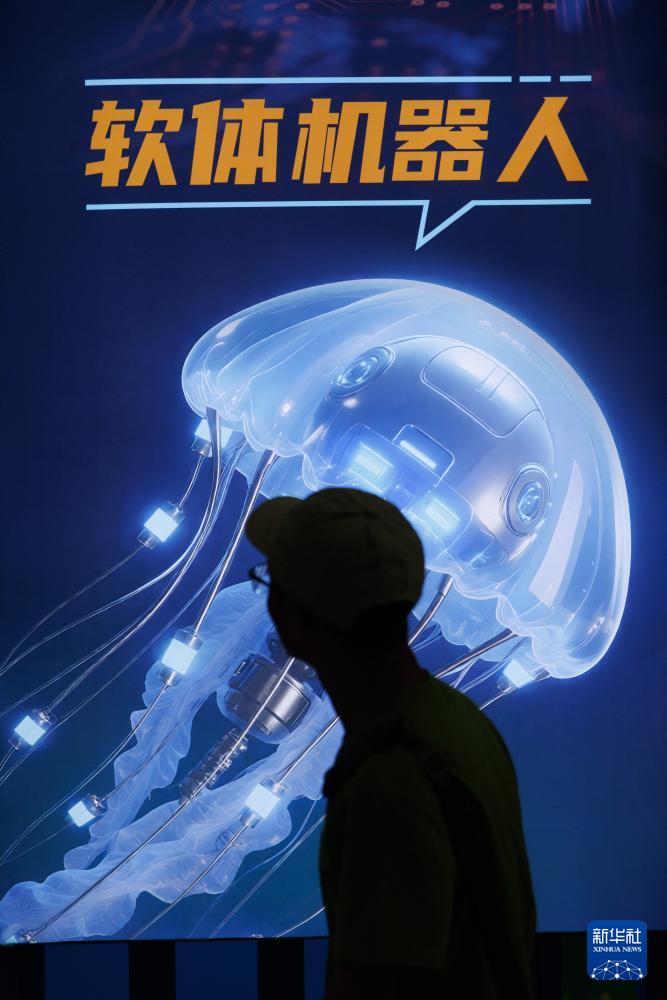 9月5日,參觀者在中國科技館了解軟體機(jī)器人。